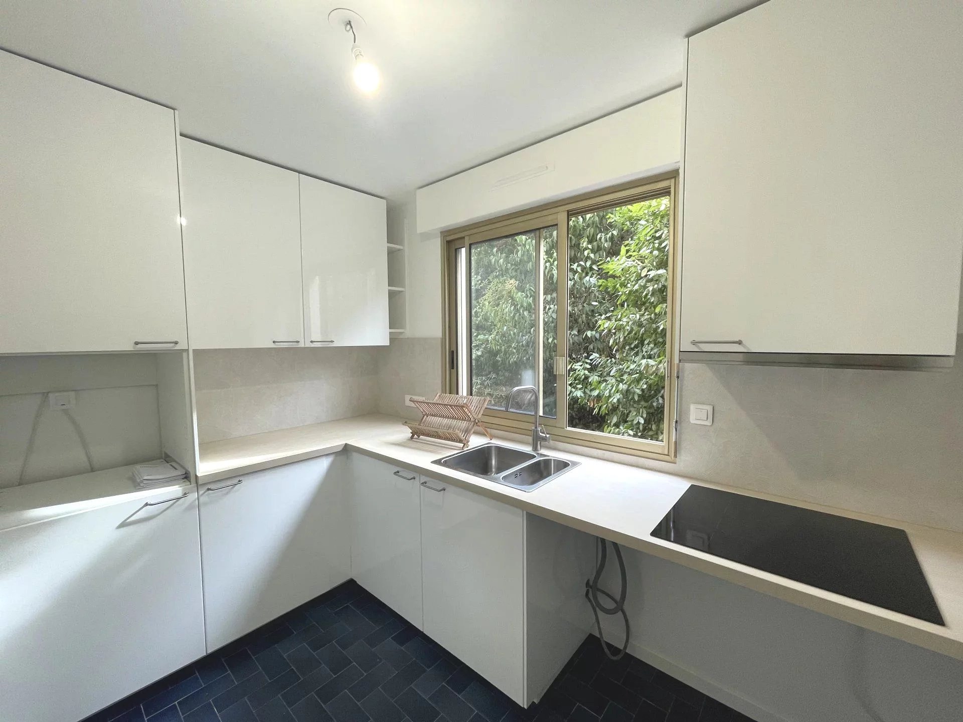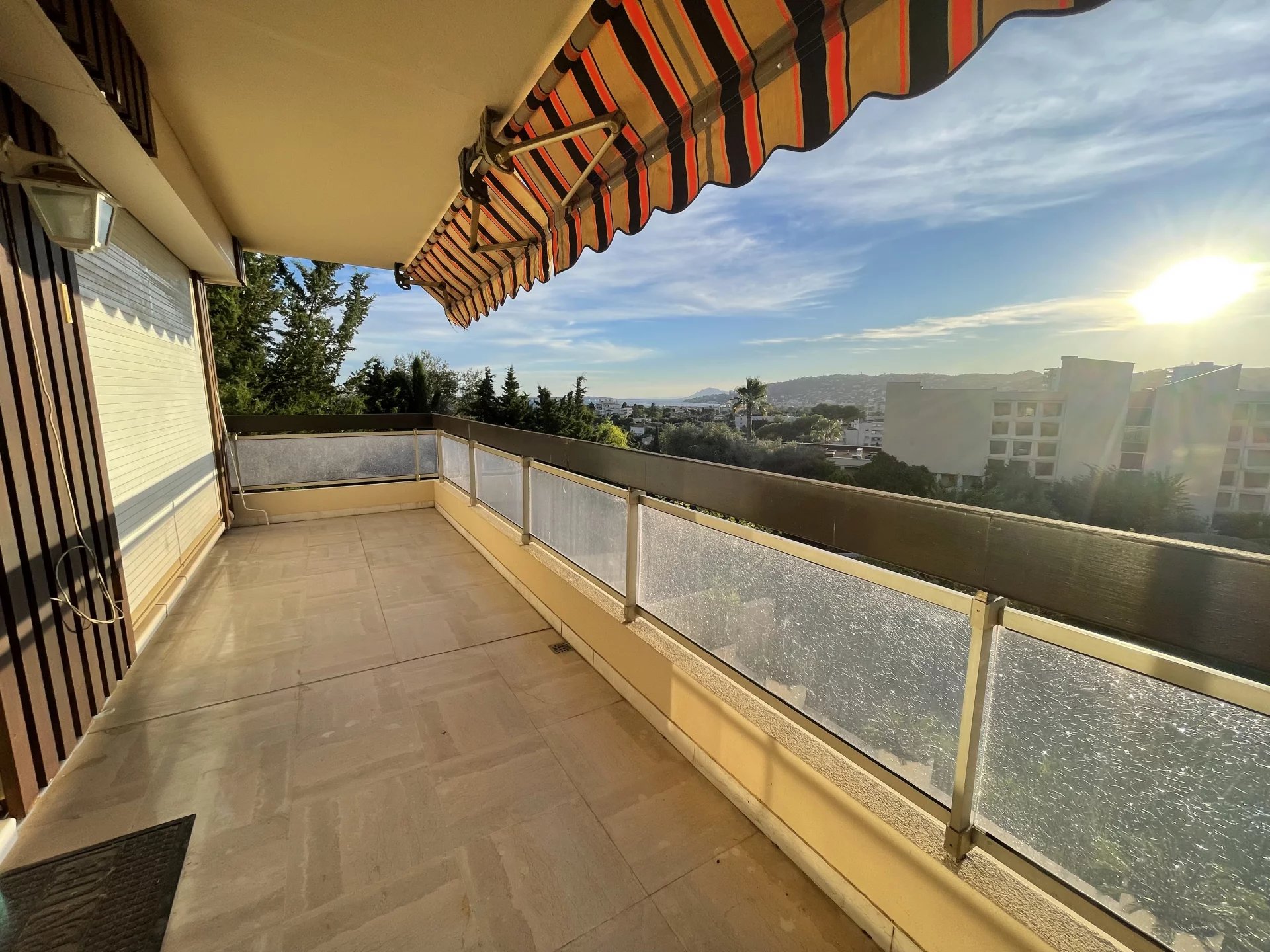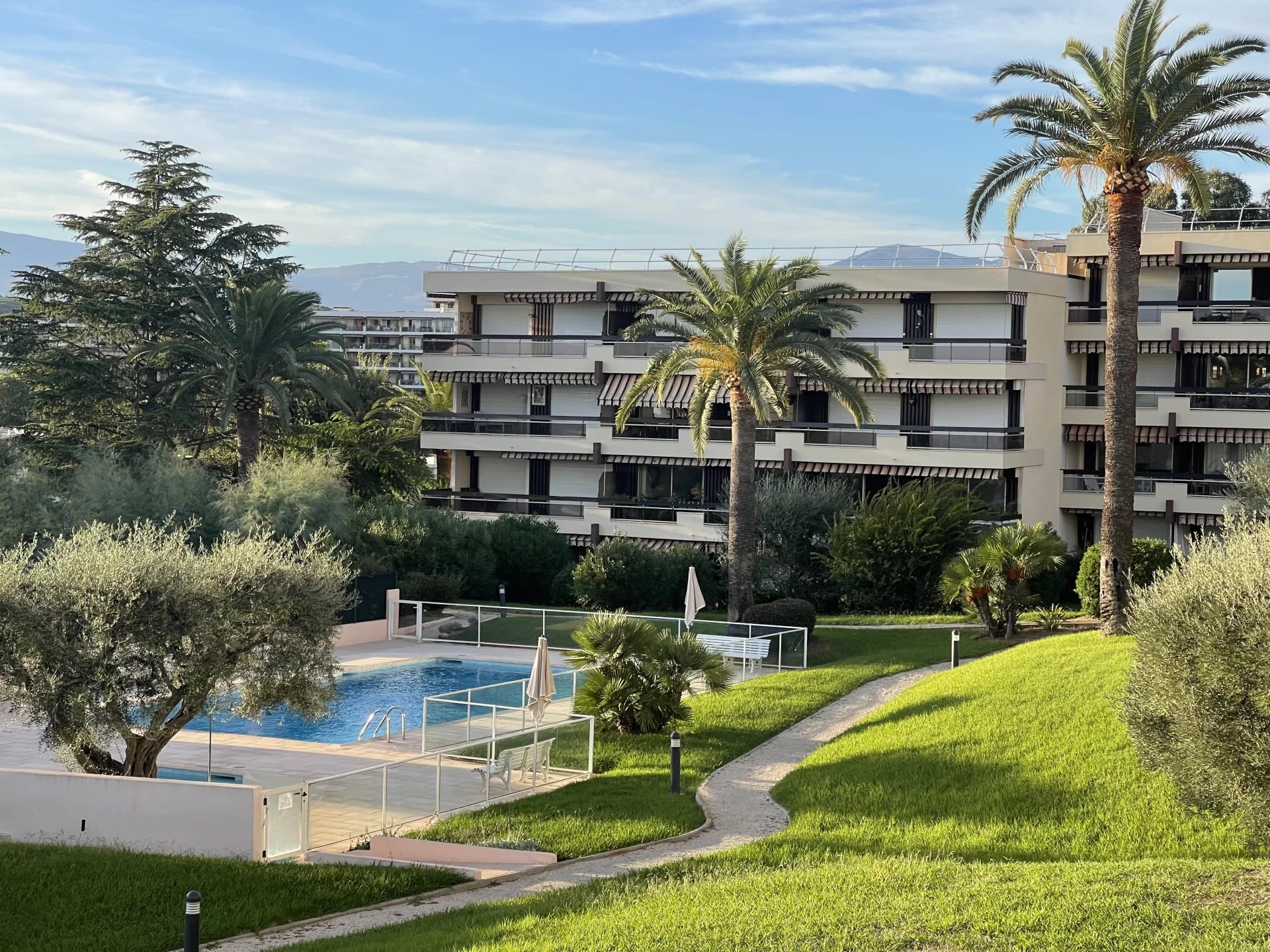 Dans résidence standing gardée avec piscine et tennis, Vue Mer pour ce beau trois pièces traversant composé de séjour ouvrant sur terrasse ensoleillée, cuisine semi équipée, deux chambres, salle de bains avec toilettes et salle d'eau, toilettes séparées. Garage et cave au sous-sol. Au calme.
